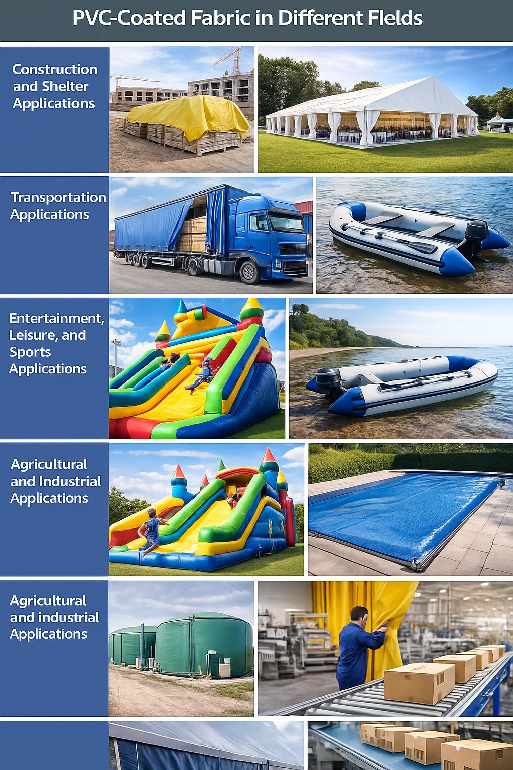 Her er noen av de viktigste bruksområdene for PVC-belagt stoff på forskjellige felt: