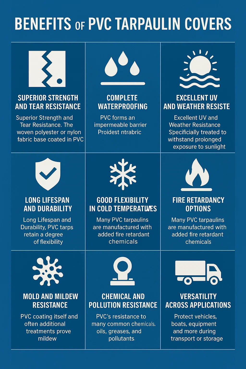 ▸Overlegen styrke og rivemotstand: Den vevde polyester- eller nylonstoffbasen, belagt i PVC, skaper et ekstremt tøft materiale. Den motstår riving, punkteringer og skader fra slitasje mye bedre enn lettere deksler. Dette gjør den ideell for krevende miljøer og tung bruk.